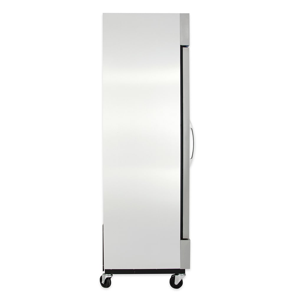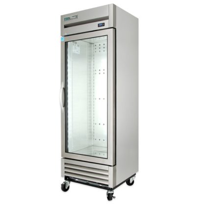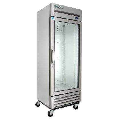 Refrigerator, reach-in, one-section, framed glass door version 01, (1) glass door, (3) PVC coated adjustable wire shelves, LED interior lighting, stainless steel front, aluminum sides, clear coated aluminum interior with stainless steel floor, 2-1/2″ castors, R290 Hydrocarbon refrigerant, 1/4 HP, 115v/60/1-ph, 2.2 amps, NEMA 5-15P, cULus, UL EPH Classified, Made in USA