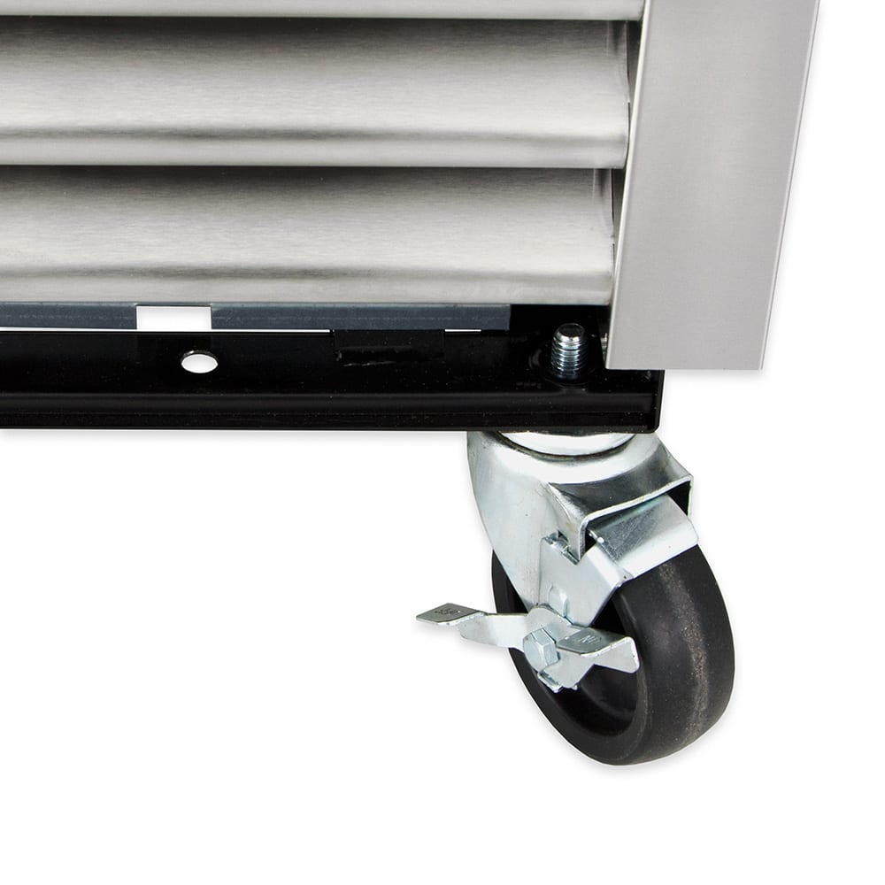 - Heavy-duty steel frame rail is black powder coated for protection from corrosion