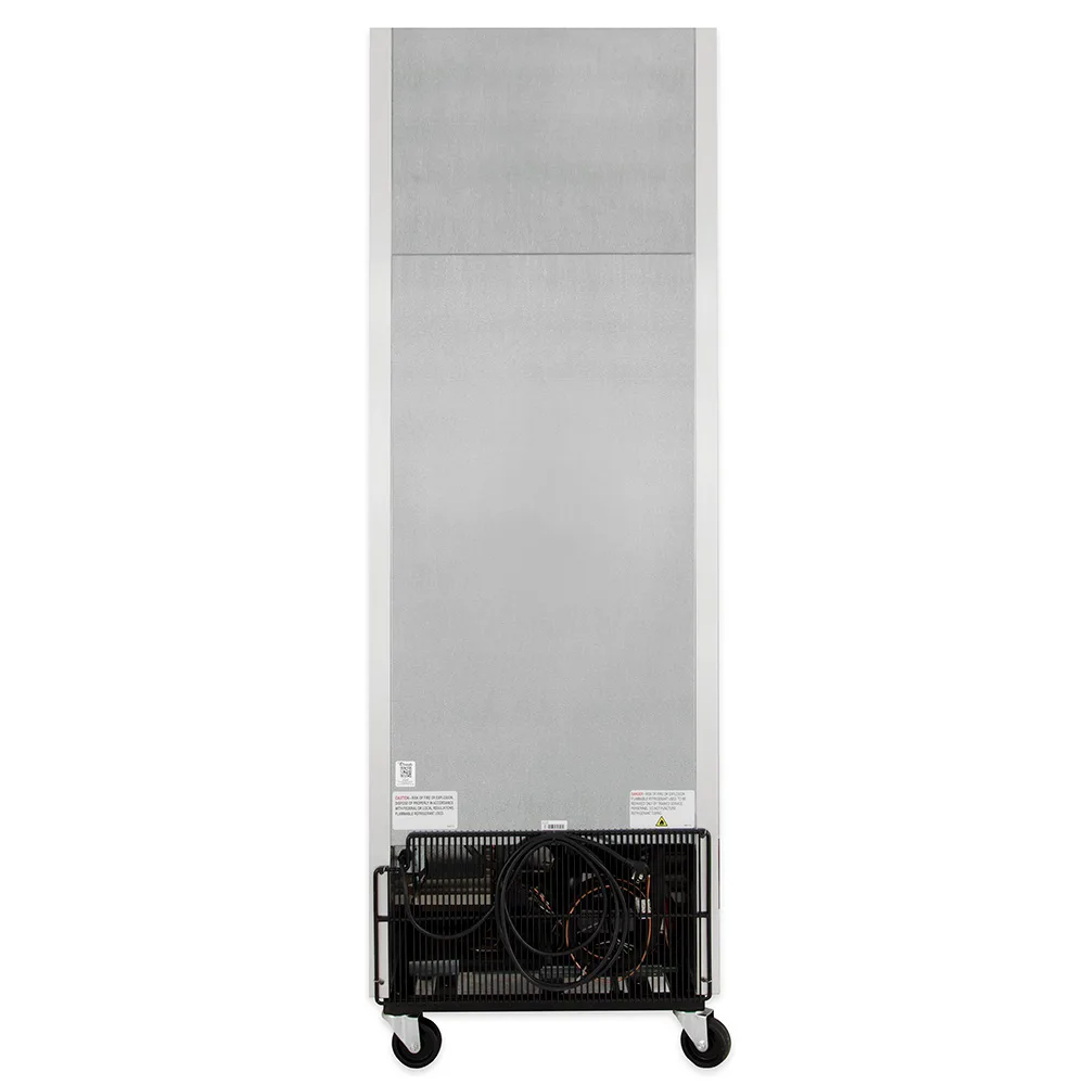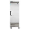 The True T-23F-HC single-section freezer maintains a temperature of -10 degrees Fahrenheit. A capillary tube system controls the flow of R290 hydrocarbon refrigerant, which regulates the internal temperature, and a consistent volume of air is evenly distributed throughout the cabinet with condenser and evaporator fan motors. Since the condensing unit is mounted on the bottom of the cabinet, it is accessible for maintenance, while the defrost system turns on at a specific time and shuts off when the unit reaches a certain temperature.