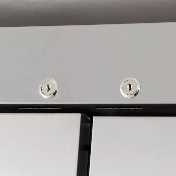 - Doors are finished with stainless steel fronts and lined inside with the same clear-coated aluminum as cabinet interior
