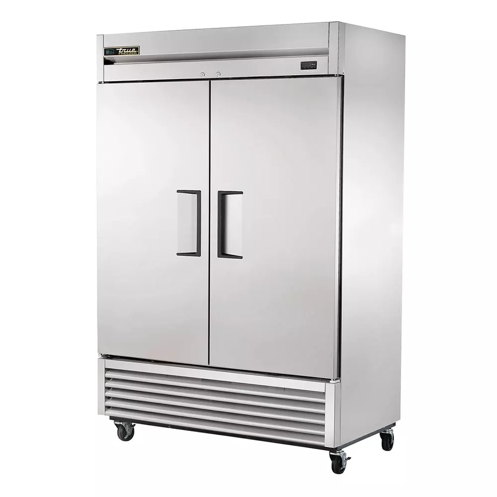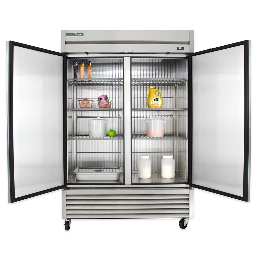 With condenser and evaporator fan motors that create high volume airflow, the True T-49F-HC reach-in freezer provides a consistently cold environment for ice cream and other frozen foods. The bottom-mounted refrigeration system maintains and quickly recovers a temperature of -10 degrees Fahrenheit. This freezer has an automatic defrost system that is time initiated and temperature terminated to prevent issues caused by ice buildup.