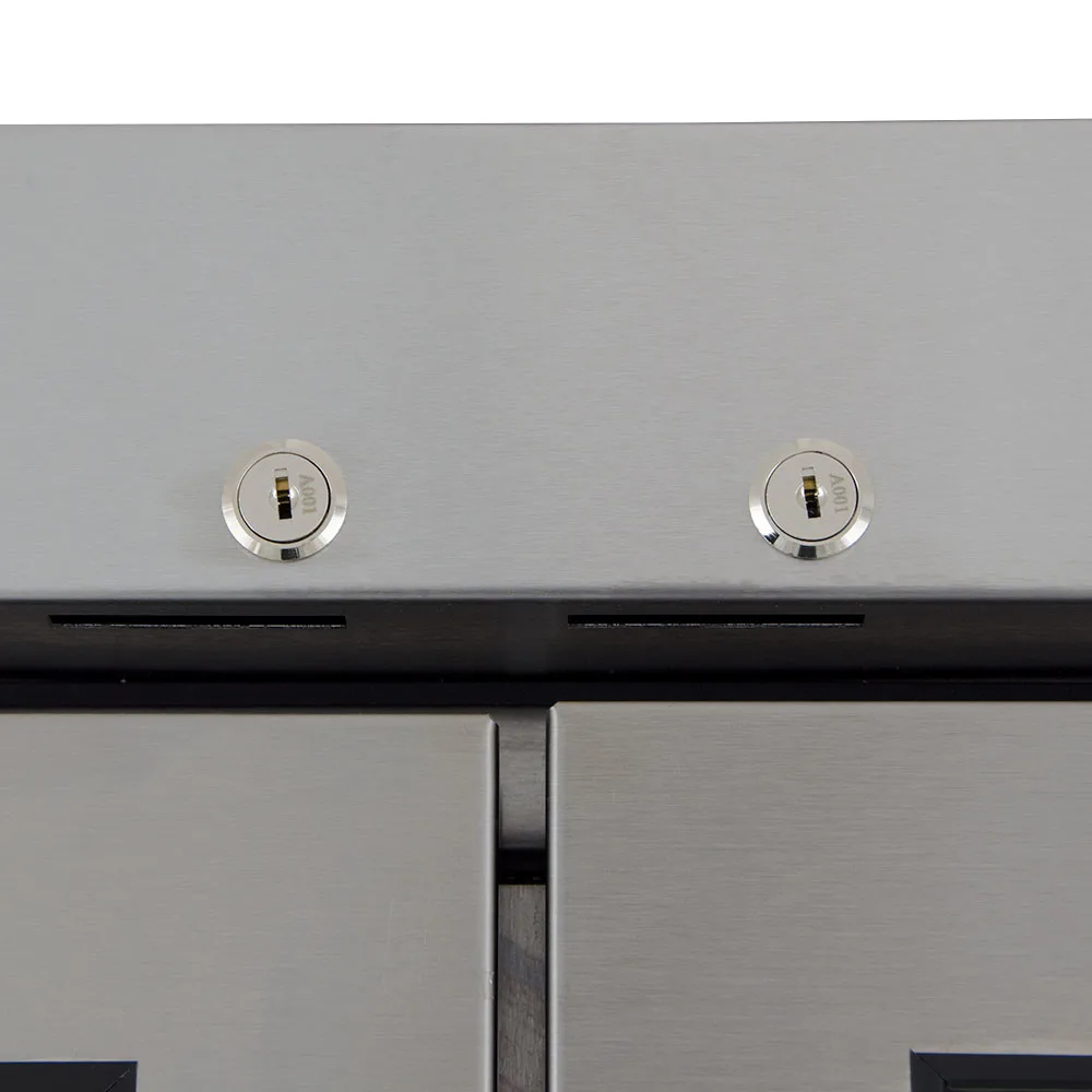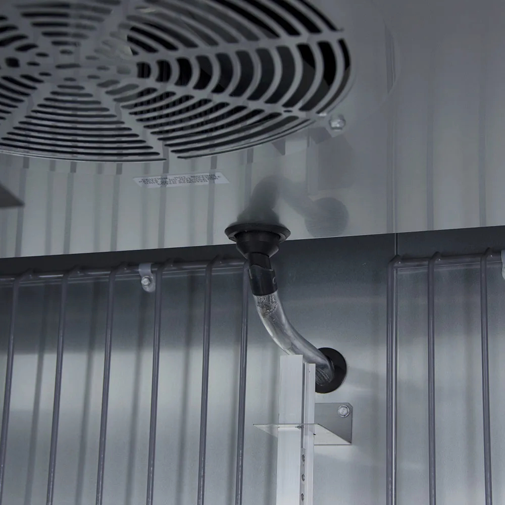 - Condensing unit is bottom mounted to ease cleaning and maintenance