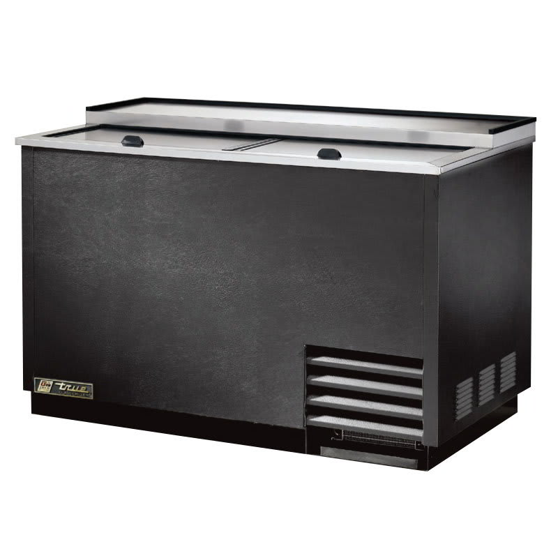 The black powder-coated exterior is durable and permanent, so the chiller ideal for high-volume use. This countertop unit is constructed from stainless steel to simplify cleaning, and the interior is made from galvanized steel for corrosion resistance. Foamed-in-place polyurethane insulation creates cabinet structure while also retaining cold air. For corrosion resistance, the evaporator is epoxy coated, while the True T-50-GC-HC glass chiller is great for bars since it provides customers with cold drinks without diluting them with ice.