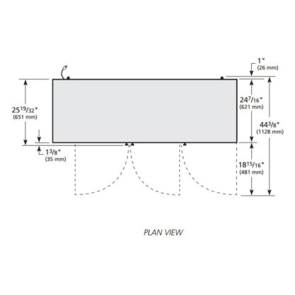 - Right and left shelves: 19 in. W x 161/4 in. D