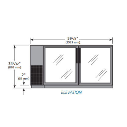 Back Bar Cooler, two-section, 59-7/8″W, (72) 6-packs or (3) 1/2 keg capacity, (4) wire shelves, condensing unit on left, galvanized sub top, (2) glass doors with locks, LED interior light, galvanized interior with stainless steel floor, stainless steel front & sides, aluminum back, R290 Hydrocarbon refrigerant, 1/4 HP, 115v/60/1-ph, 2.7 amps, NEMA 5-15P, cULus, UL EPH Classified, Made in USA