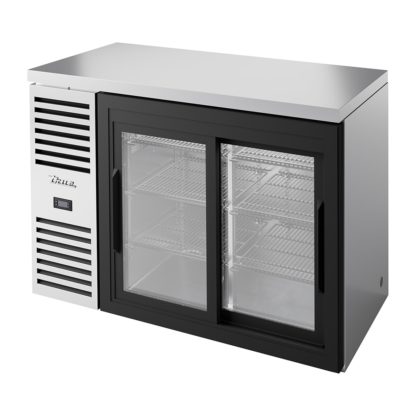 Refrigerated Back Bar Cooler, two-section, 48″W, (76) 6-pack cans or (43) 6-pack bottles capacity, side mounted self-contained refrigeration, (2) sliding glass doors, LED interior lighting, stainless steel countertop, stainless steel exterior, stainless steel interior (sides & floor), R290 Hydrocarbon refrigerant, 1/5 HP, 115v/60/1-ph, 1.8 amps, NEMA 5-15P, cULus, UL EPH Classified, Made in USA