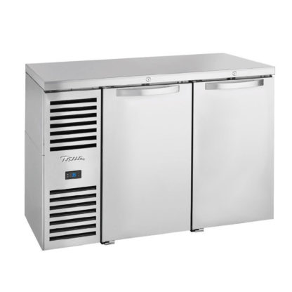 Refrigerated Back Bar Cooler, two-section, 48″W, (76) 6-pack cans or (43) 6-pack bottles capacity, side mounted self-contained refrigeration, (2) solid hinged doors (locking), LED interior lighting, stainless steel countertop, stainless steel exterior, stainless steel interior (sides & floor), R290 Hydrocarbon refrigerant, 1/5 HP, 115v/60/1-ph, 1.8 amps, NEMA 5-15P, cULus, UL EPH Classified, Made in USA