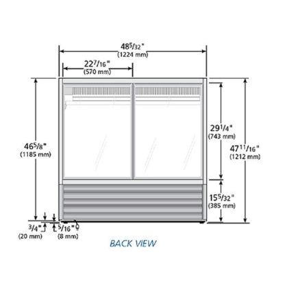Curved Glass Deli Case, 48-1/4″W, service type, self-contained refrigeration, gravity coil 55% RH, envir. 75°F, (2) sliding Low-E thermal glass rear doors, (2) adjustable white wire shelves, LED interior lights, stainless steel interior & exterior, stainless steel floor with coved corners, 1/3 HP, 115v/60/1-ph, 11.8 amps, NEMA 5-15P, cULus, UL EPH Classified, Made in USA