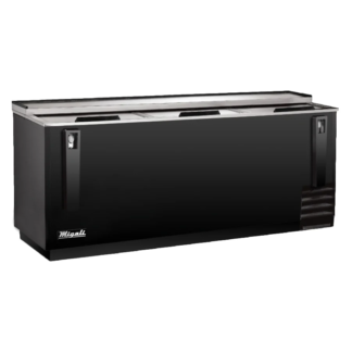 Bottle Cooler, flat top, (30cs) 12 oz. bottles or (42cs) 12 oz. can capacity, stainless steel counter top & (3) lids, barrel locks standard, well design, (6) PVC coated adjustable bin dividers, LED interior lighting, bottle cap opener & cap catcher, black powder coated exterior, galvanized interior, R290 Hydrocarbon refrigerant, 1/4 HP, 115v/60/1-ph, 2.8 amps, NEMA 5-15P, cULus, UL EPH Classified, Made in USA