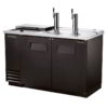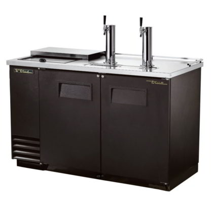 A temperature can be set between 33 and 38 degrees Fahrenheit, and its epoxy-coated evaporator resists corrosion. To keep cold air inside, walls and doors are insulated with polyurethane foam, and magnetic gaskets tightly seal doors. Servicing the refrigeration system in this True TDD-2CT-HC draft beer system is facilitated by its slide-out design.
