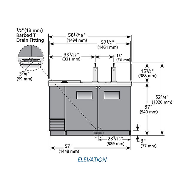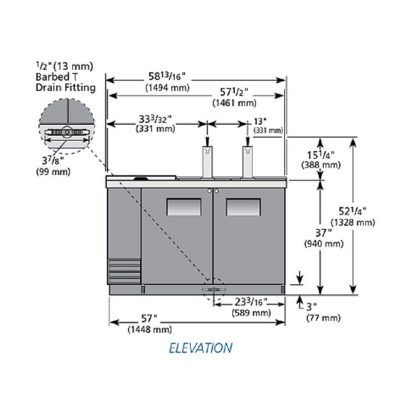 Club Top Draft Beer Cooler, (2) 1/2 keg capacity, stainless steel counter top & lid, (2) solid hinged doors with locks, (1) PVC coated adjustable wire shelf, LED interior light, (2) 3″ dia. insulated beer columns with single faucet draft arm, black vinyl exterior, galvanized interior with stainless steel floor, R290 Hydrocarbon refrigerant, 1/4 HP, 115v/60/1-ph, 2.8 amps, NEMA 5-15P, cULus, UL EPH Classified, Made in USA, ENERGY STAR