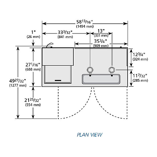 - Overall: 5813/16 in. W x 2811/16 in. D x 523/4 in. H