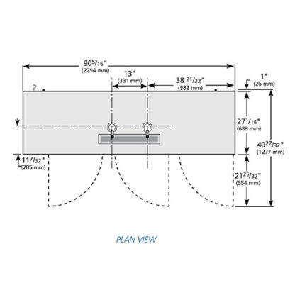 • 905/16 in. W x 28 11/16 in. D x 523/4 in. H