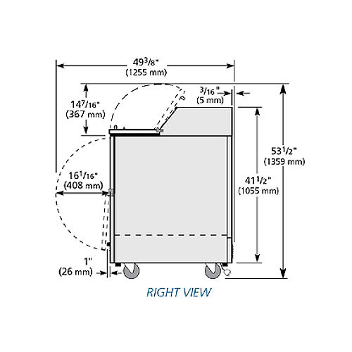 Mobile Milk Cooler, forced-air, (8) 13″ x 13″ x 11-1/8″ crate capacity, stainless steel drop front/hold-open flip-up lid with lock, 33 – 38°F temperature range, (2) heavy-duty floor racks, digital thermometer, white vinyl exterior, stainless steel interior & floor, R290 Hydrocarbon refrigerant, 4″ castors, 1/5 HP, 115v/60/1-ph, 2.7 amps, NEMA 5-15P, cULus, UL EPH Classified, Made in USA