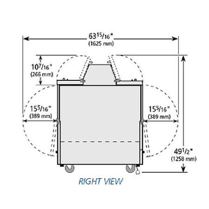For serving two lunch lines simultaneously, the True TMC-49-S-DS-SS-HC milk cooler has dual-sided access provided by two flip-up doors and two drop-down doors on each side. All these doors are made of stainless steel and have locks that secure the milk, as the unit can hold twelve 13-inch by 13-inch milk crates. Because the floor is reinforced and has durable floor racks, the cooler can support heavy loads, and the interior walls and floor are made of stainless steel to simplify cleaning. A cleanout drain is integrated into the floor, so employees can drain water and spills from the cabinet.