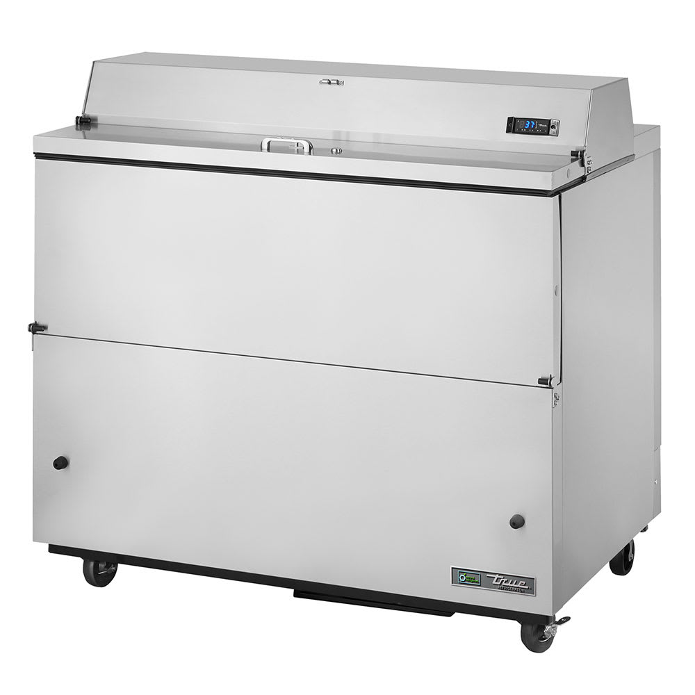 To keep the set internal temperature between 33 and 38 degrees Fahrenheit, the True TMC-49-S-SS-HC milk cooler uses R290 hydrocarbon refrigerant through a capillary tube system. Its electronically commutated motors are energy efficient, while the evaporator is epoxy coated to resist corrosion. The temperature is visible on an exterior digital display to help operators ensure food safety and meet HACCP regulations. Accessibility is efficient when maintenance is required because the condensing unit slides out from the back.