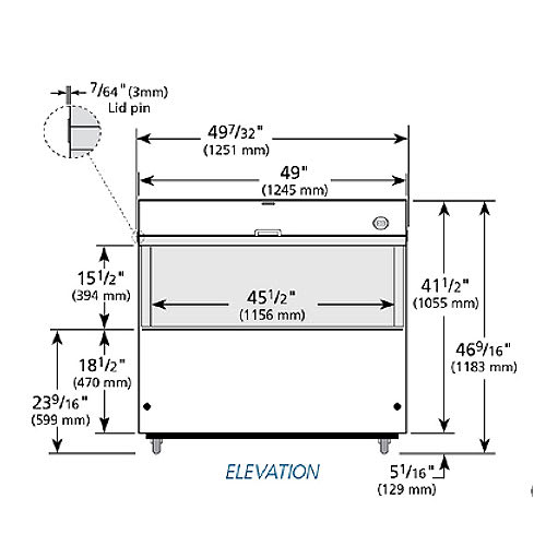 Mobile Milk Cooler, forced-air, (12) 13″ x 13″ x 11-1/8″ crate capacity, stainless steel drop front/hold-open flip-up lid with lock, 33 – 38°F temperature range, (3) heavy-duty floor racks, digital thermometer, white vinyl exterior, stainless steel interior & floor, 4″ castors, R290 Hydrocarbon refrigerant, 1/5 HP, 115v/60/1-ph, 2.7 amps, NEMA 5-15P, cULus, UL EPH Classified, Made in USA, ENERGY STAR
