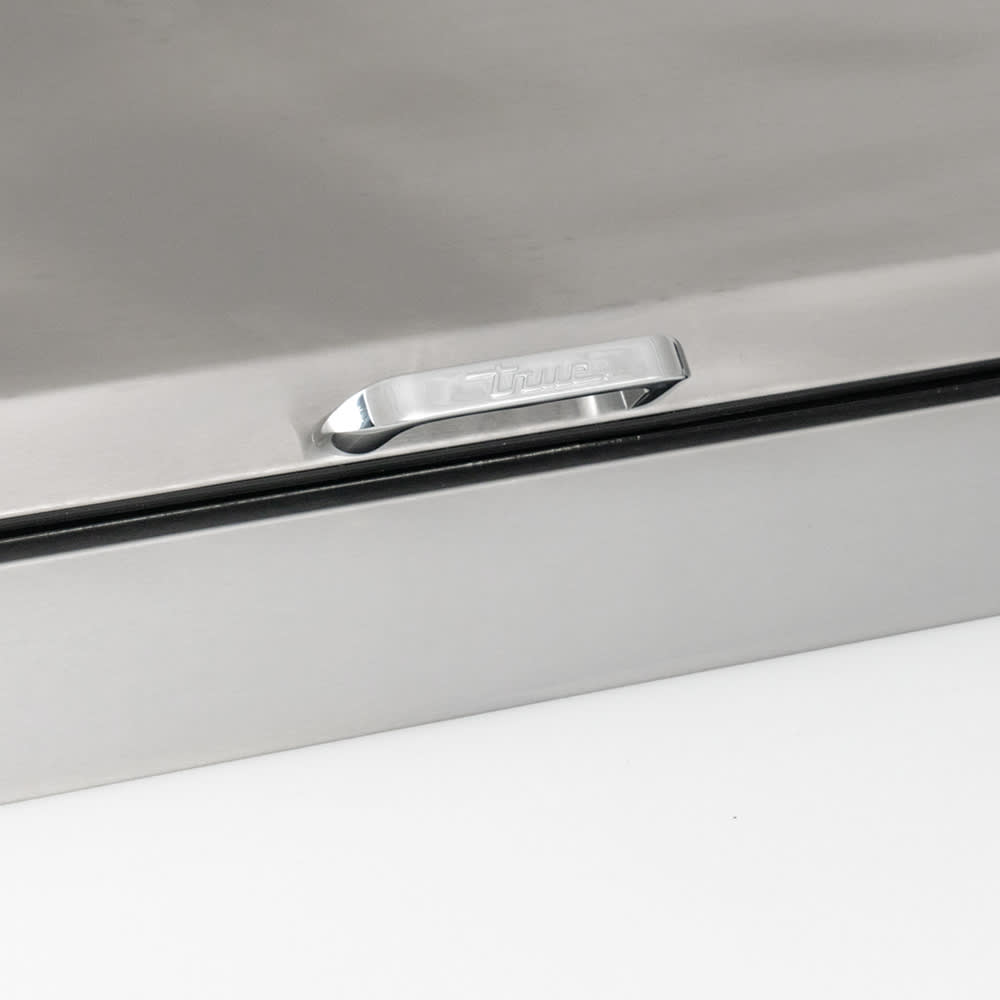 This True TPP-93-HC pizza prep unit offers condenser access, while operators can remove the front panel and pull out the unit for cleaning or maintenance. To regulate R290 hydrocarbon refrigerant flow and create cold air, the refrigeration system uses capillary tubes. Fans push air around the cabinet and to the pan rail, cooling food at an adjustable temperature between 33 and 41 degrees Fahrenheit.