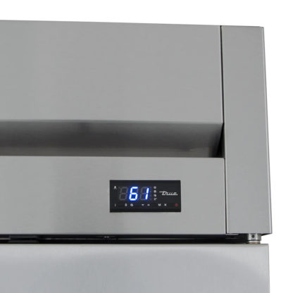 Because the refrigeration system is bottom mounted, users can store rarely used supplies on top of the unit. This low placement also lifts the interior floor, so stooping is not needed to reach products. Frozen foods are kept at -10 degrees Fahrenheit by the R290 hydrocarbon refrigerant and a capillary tube system. A consistent airflow is created with the reliable evaporator and condenser fans, and to prevent products from blocking the airflow, guards are in the back of the cabinet. The automatic defrost system ensures the True TS-23F-HC reach-in freezer runs properly and reduces the need for excessive maintenance.