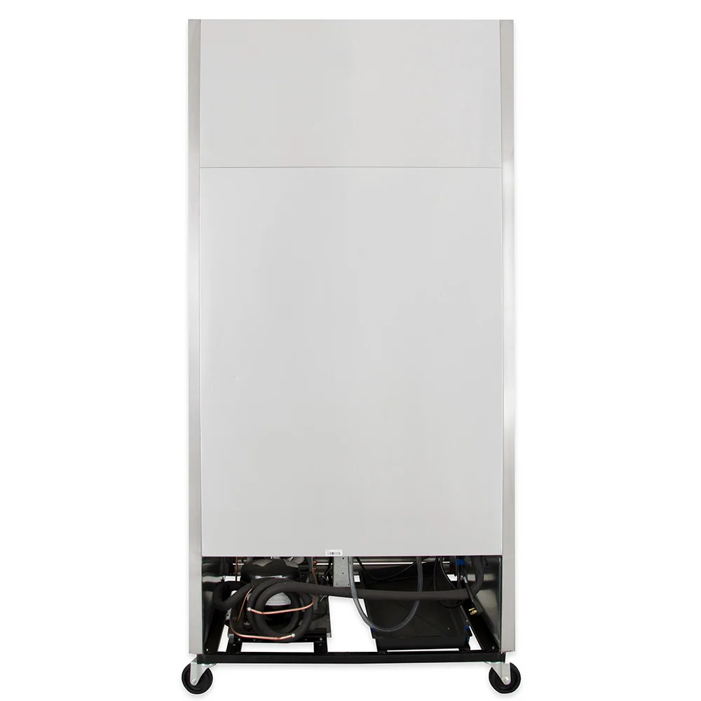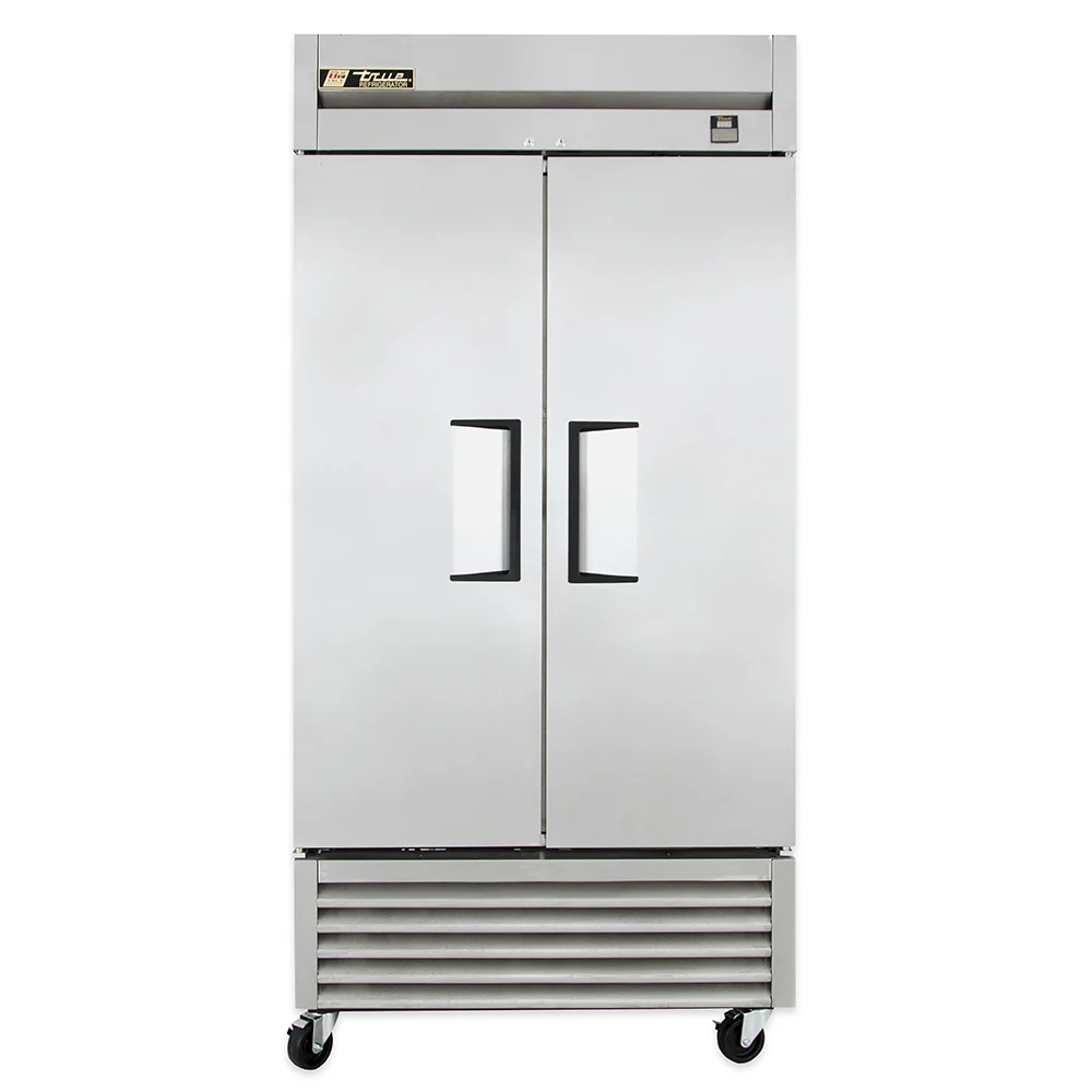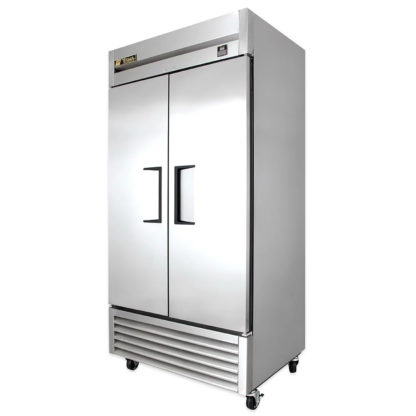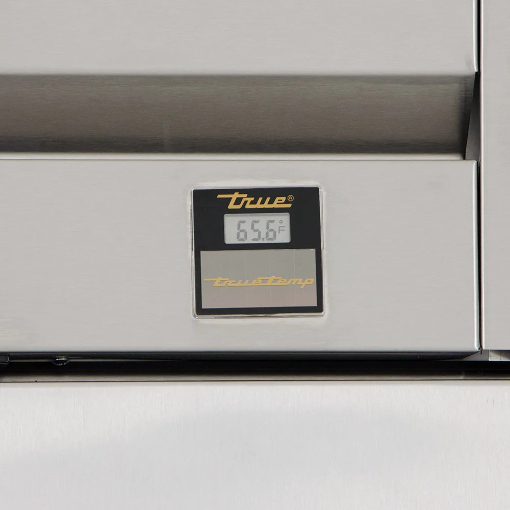 The True TS-35-HC reach-in refrigerator has a bottom-mounted refrigeration system that is accessible for cleaning and servicing and has energy-efficient fans that consume little energy and provide even cooling. Cool temperatures are maintained as R290 refrigerant flows through the capillary tube system. Temperatures can be set between 33 and 38 degrees Fahrenheit, and readouts are shown on the digital display.