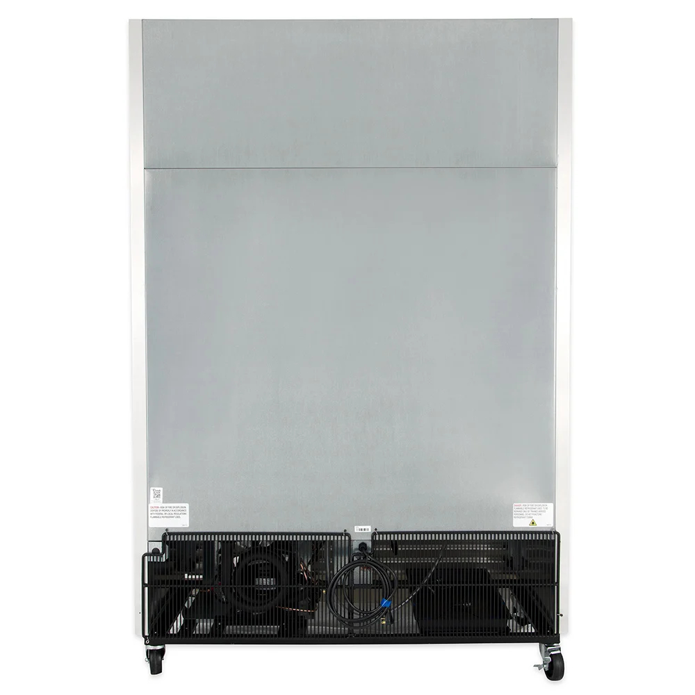Using R290 hydrocarbon refrigerant, the True TS-49-HC two-section refrigerator maintains cool temperatures, and this type of natural refrigerant is kinder to the environment than synthetic, traditional options. Capillary tubes regulate the refrigerant flow, and for consistent cooling, evaporator and condenser fans circulate air at a constant rate. Its bottom-mounted condensing unit does not require a stool or ladder for maintenance access, enabling dry storage space on the top of the unit.