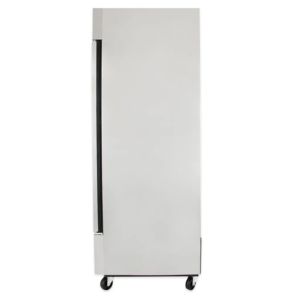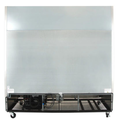 To retain cold air, the entire cabinet structure is insulated with foamed-in-place polyurethane, and its self-contained, capillary tube refrigeration system uses eco-friendly R290 hydrocarbon refrigerant to keep temperatures cool. An extra-large evaporator coil is balanced with a high-horsepower condenser to maintain the temperature of the True TS-72F-HC three-section freezer at -10 degrees Fahrenheit, and it can hold open food products since it is NSF/ANSI Standard 7 compliant.