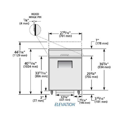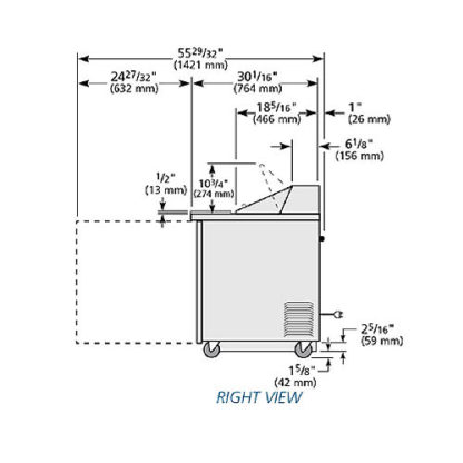 Sandwich/Salad Unit, 34″ work surface height, (8) 1/6 size (4″D) poly pans, stainless steel insulated cover, 11-3/4″D cutting board, (1) door, (2) PVC coated adjustable wire shelves, stainless steel top, front & sides, aluminum back, aluminum interior with stainless steel floor, 3″ castors, R290 Hydrocarbon refrigerant, 1/5 HP, 115v/60/1-ph, 3.5 amps, NEMA 5-15P, cULus, UL EPH Classified, ADA Compliant, Made in USA