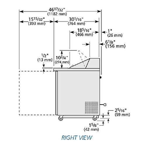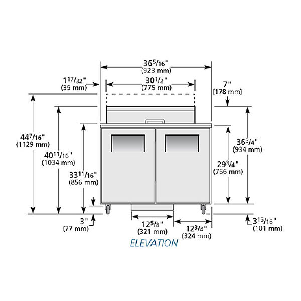 Sandwich/Salad Unit, 34″ work surface height, (8) 1/6 size (4″D) poly pans, stainless steel insulated cover, 11-3/4″D cutting board, (2) full doors, (4) PVC coated adjustable wire shelves, stainless steel top, front, sides, aluminum back, aluminum interior with stainless steel floor, 3″ castors, R290 Hydrocarbon refrigerant, 1/4 HP, 115v/60/1-ph, 4.5 amps, NEMA 5-15P, cULus, UL EPH Classified, ADA Compliant, Made in USA