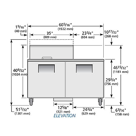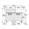 Mega Top Sandwich/Salad Unit, (15) 1/6 size (4″D) poly pans, stainless steel insulated cover, 8-7/8″D cutting board, (2) full doors, (4) PVC coated adjustable wire shelves, stainless steel top/front/sides, aluminum back, aluminum interior with stainless steel floor, 5″ castors, R290 Hydrocarbon refrigerant, 1/3 HP, 115v/60/1-ph, 6.5 amps, NEMA 5-15P, cULus, UL EPH Classified, Made in USA