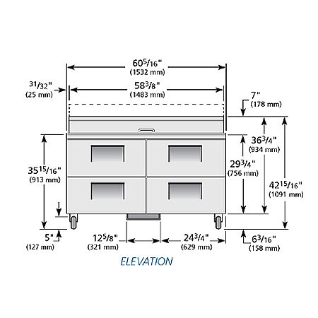 - 1 full-size, 12-in. L x 20-in. W x 6-in. D food pan or other pan configurations with divider bars can fit in each drawer (pans and divider bars sold separately)