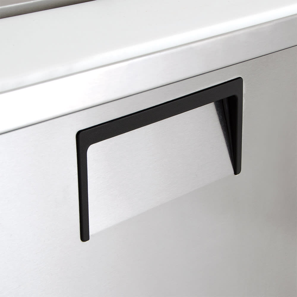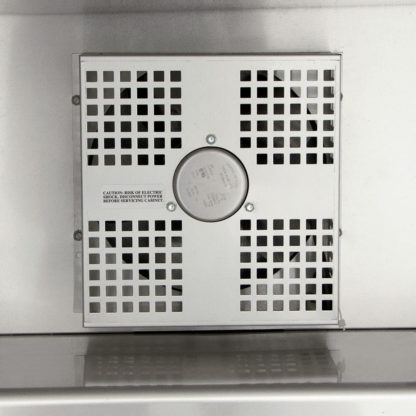 Storage space in the cabinet base is provided by four adjustable, coated shelves, and because these shelves have a wire design, they have gaps that encourage even airflow. The liner in the cabinet is made of clear-coated aluminum—a material that resists dents and corrosion. Constructed of stainless steel, the heavy-duty interior floor has coved corners that eliminate debris-trapping crevices, streamlining the cleaning process.