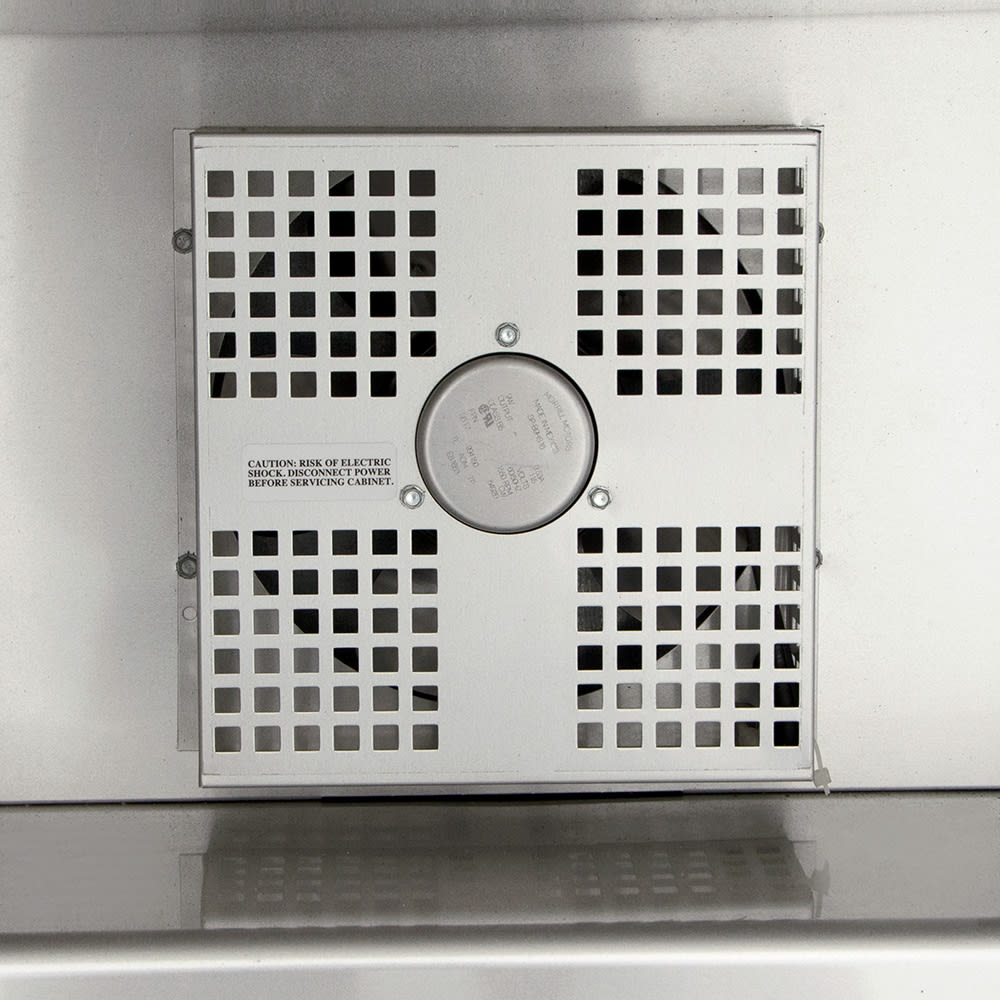 - Large fan blades create low-velocity, high-volume airflow for even cold-air distribution