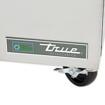 Depending on the application, the operator can set the temperature as low as 33 degrees Fahrenheit or as high as 41 degrees Fahrenheit, and the refrigeration system uses eco-friendly R290 hydrocarbon refrigerant to maintain these levels. Accessing the condenser is convenient since it slides out at the back. The True TSSU-60-24M-B-ST-HC prep table has 5-inch-diameter stem castors, so it can be moved for clear service access.