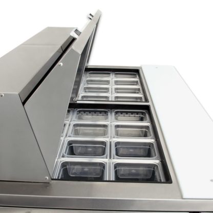 - Stainless steel hood and lid assembly is foam insulated, retaining cold air to prolong product freshness