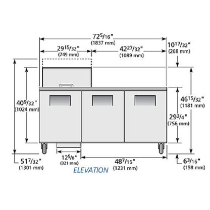 Mega Top Sandwich/Salad Unit, (12) 1/6 size (4″D) poly pans, stainless steel insulated cover, 8-7/8″D cutting board, (3) full doors, (6) PVC coated adjustable wire shelves, stainless steel top/front/sides, aluminum back, aluminum interior with stainless steel floor, 5″ castors, R290 Hydrocarbon refrigerant, 1/2 HP, 115v/60/1-ph, 7.2 amps, NEMA 5-15P, cULus, UL EPH Classified, CE, Made in USA