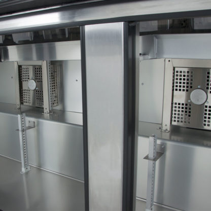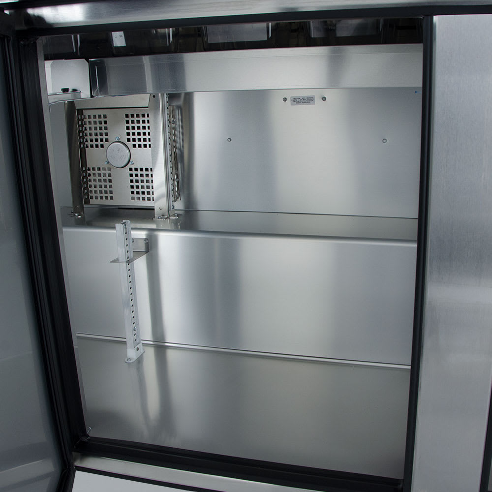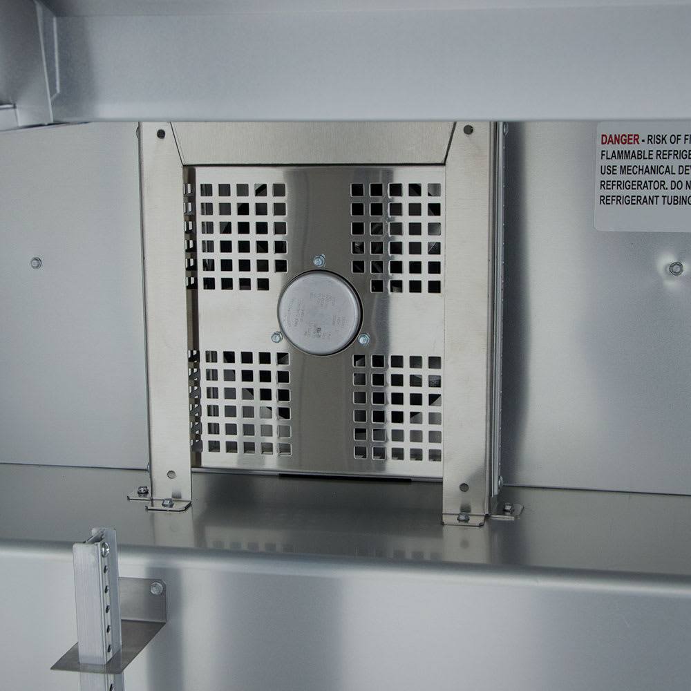 - Forced-air design evenly cools the food pans and cabinet interior