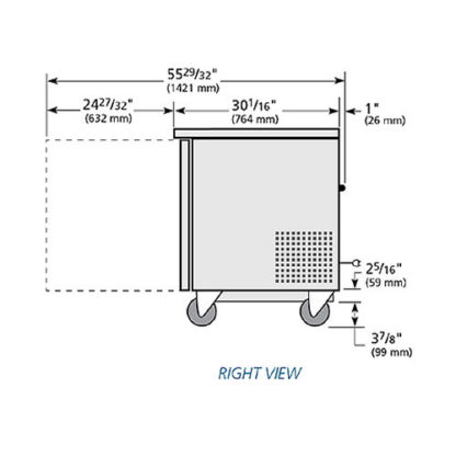 Undercounter Refrigerator, 33-38° F, stainless steel top & sides, (1) left-hinged stainless steel door, (2) shelves, clear coated aluminum interior with stainless steel floor, (1) stainless steel door, 5″ castors, front breathing, R290 Hydrocarbon refrigerant, reverse condensing fan motor, 1/6 HP, 115v/60/1, 2.0 amps, NEMA 5-15P, cULus, UL EPH Classified, CE, MADE IN USA