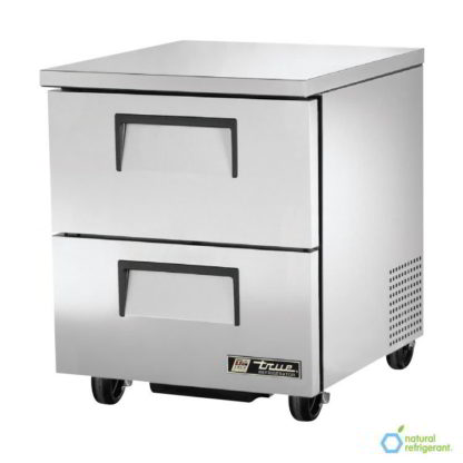 Great for operations that need additional chilled storage, the True TUC-27D-2-HC undercounter refrigerator has two drawers that hold food pans filled with ingredients or dishes that need to be rethermed. The cabinet’s stainless steel construction adds strength and withstands scratches, dents, and rust. Using eco-friendly R290 hydrocarbon refrigerant, this refrigerator maintains a set temperature between 33 and 38 degrees Fahrenheit, which operators can set to the desired level.