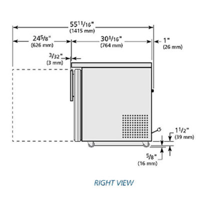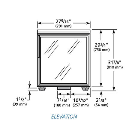 Low Profile Undercounter Refrigerator, framed glass door version 01, 31-7/8″ counter height, 33 – 38°F, (1) Low-E glass door, (2) PVC coated adjustable wire shelves, LED interior lighting, stainless steel top, front & sides, clear coated aluminum interior with stainless steel floor, 1-1/2″ dual swivel castors, R290 Hydrocarbon refrigerant, 1/6 HP, 115v/60/1-ph, 2.0 amps, NEMA 5-15P, cULus, UL EPH Classified, CE, Made in USA