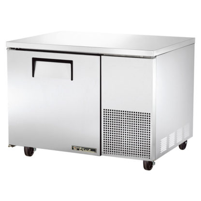 The temperature in the cabinet can be set to a level between 33 and 38 degrees Fahrenheit using the electronic controller. The refrigeration system uses R290 hydrocarbon refrigerant-an eco-friendly alternative to traditional options-to maintain these temperatures. This True TUC-44-HC~SPEC3 deep undercounter freezer has a positive-sealing door that swings within the dimensions of the cabinet. To withstand heavy use, the door handle is made completely of metal. A lock on the door keeps stored items secure and protected from potential tampering.