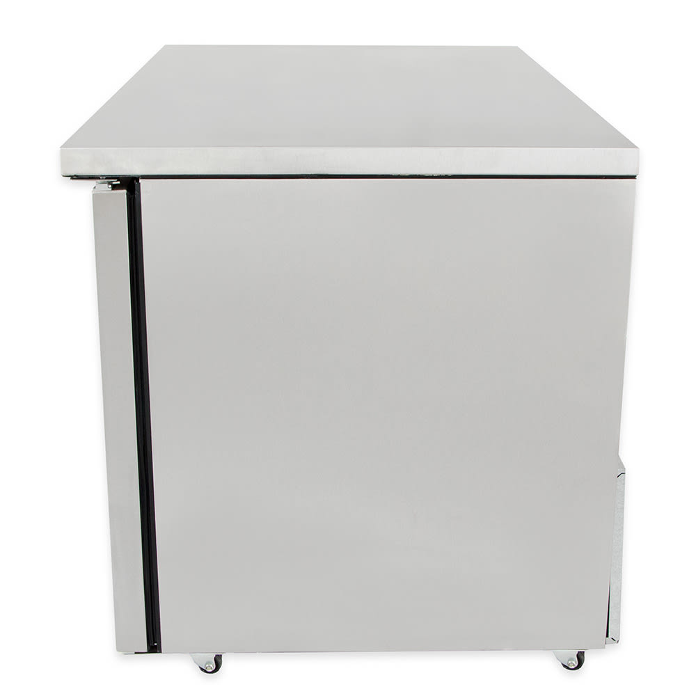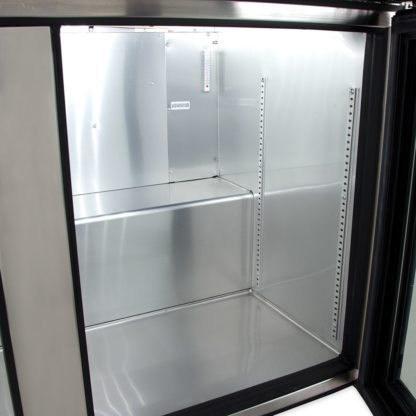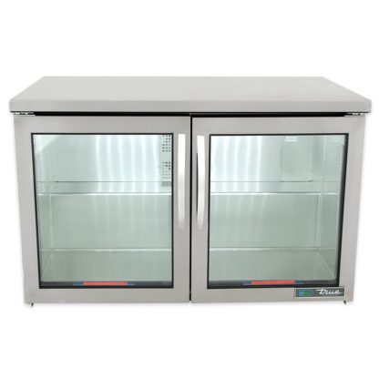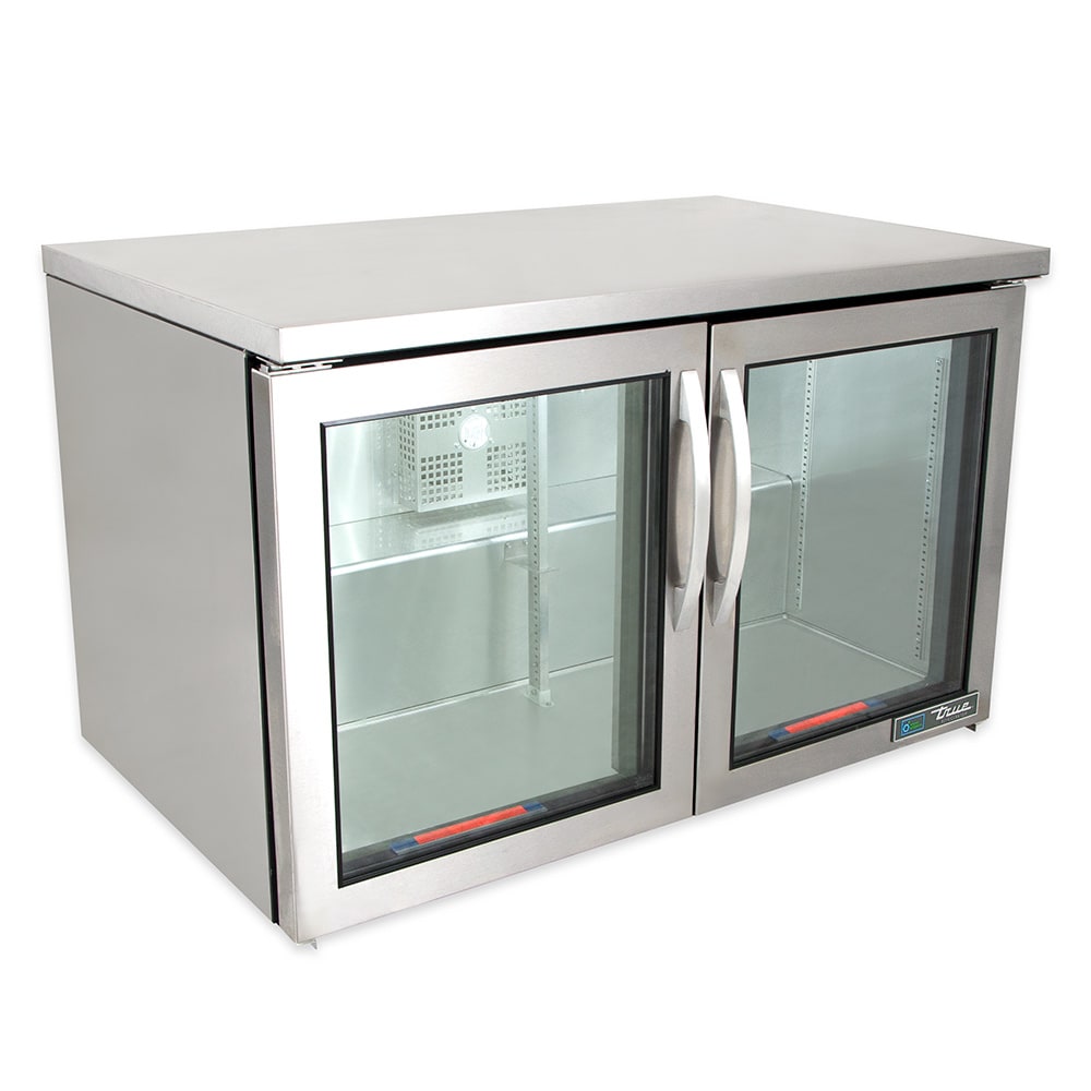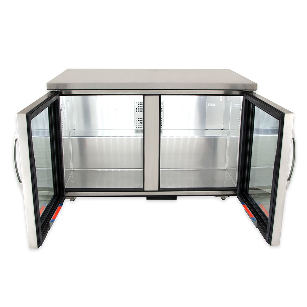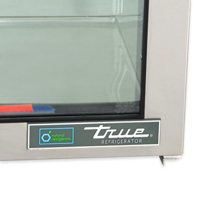 This True TUC-48G-LP-HC~FGD01 undercounter refrigerator’s entire cabinet structure is foamed in place using Ecomate, and each door is fitted with a 12-inch-long handle, thermal-insulated glass, and extruded aluminum frame. Their magnetic gaskets are one piece that snaps out of the frame without tools, while its self-closing doors swing within the cabinet dimensions and stay open at 90 degrees.
