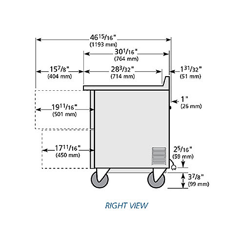 Work Top Refrigerator, one-section, rear mounted self-contained refrigeration, stainless steel top with rear splash, (2) drawers each accommodates (1) 12″ x 20″ x 6″ pan (not included), stainless steel front & sides, clear coated aluminum interior with stainless steel floor, 5″ castors, R290 Hydrocarbon refrigerant, 1/6 HP, 115v/60/1-ph, 2.0 amps, NEMA 5-15P, cULus, UL EPH Classified, CE, Made in USA