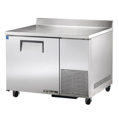 SPEC SERIES Deep Work Top Refrigerator, one-section, SPEC Package 3 includes: 16-ga. stainless steel top with rear splash, (1) heavy-duty stainless steel door, steel handle, door lock standard, (2) PVC coated adjustable wire shelves, electronic temperature control with digital temperature display, stainless steel front, sides & back, stainless steel interior, 5″ castors, side mount front breather, R290 Hydrocarbon refrigerant, 1/10 HP, 115v/60/1-ph, 1.7 amps, NEMA 5-15P, cULus, UL EPH Classified, Made in USA