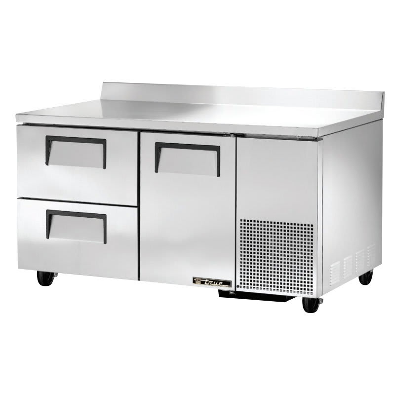 The True TWT-60-32D-2-HC worktop refrigerator uses electronically commutated motors to optimize its condenser fan and evaporator, improving air circulation and diminishing heat generation to save energy. This refrigerator employs R290, a coolant with zero ozone depletion potential (ODP) and three global warming potential (GWP). Its refrigeration system is factory balanced and keeps temperatures between 33 and 38 degrees Fahrenheit.
