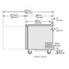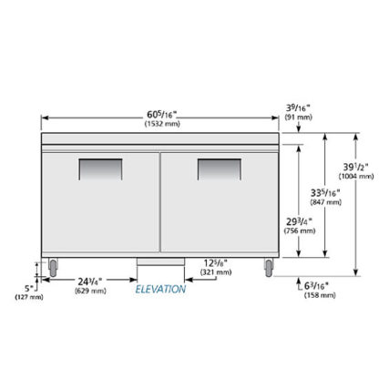 Work Top Freezer, two-section, -10°F, rear mounted self-contained refrigeration, stainless steel top with rear splash, (2) stainless steel doors, (4) PVC coated adjustable wire shelves, stainless steel front & sides, aluminum interior with stainless steel floor, 5″ castors, R290 Hydrocarbon refrigerant, 1/2 HP, 115v/60/1-ph, 4.8 amps, NEMA 5-15P, cULus, UL EPH Classified, Made in USA