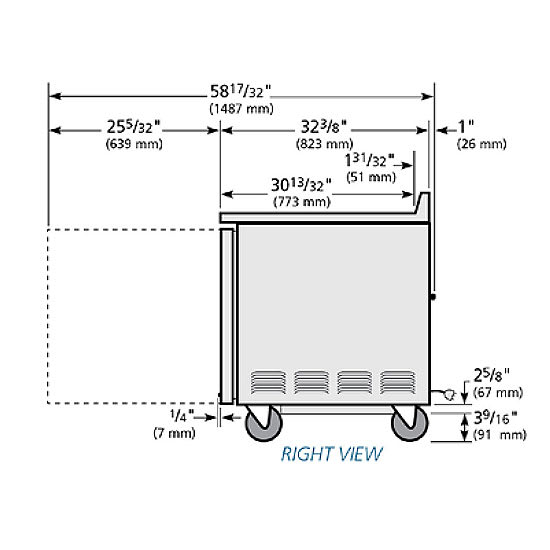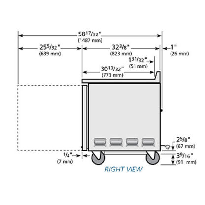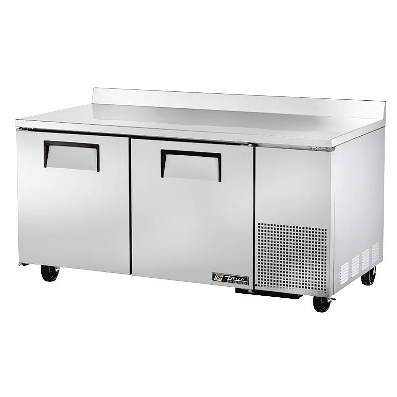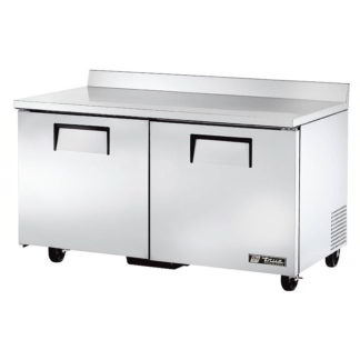 Deep Work Top Freezer, two-section, stainless steel top with rear splash, (2) stainless steel doors, (4) PVC coated adjustable wire shelves, stainless steel front & sides, aluminum interior with stainless steel floor, 5″ castors, side mount front breather, R290 Hydrocarbon refrigerant, 1/2 HP, 115v/60/1-ph, 5.8 amps, NEMA 5-15P, cULus, UL EPH Classified, Made in USA