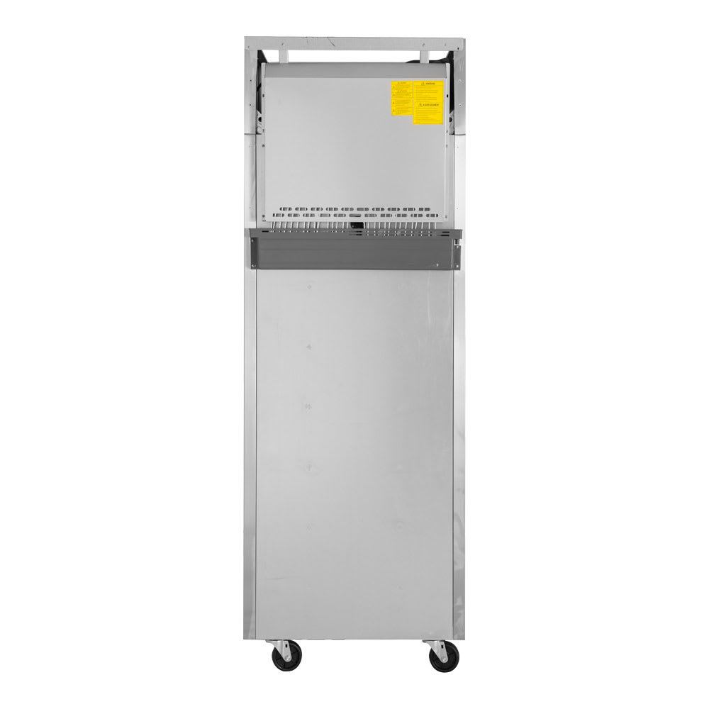 The interior of the Turbo Air M3F24-2-N one-section reach-in freezer can be rapidly cooled when the Turbo Freeze function is activated, which runs the compressor to continuously run for 2 hours. The refrigeration system is self-contained and maintains temperatures from -10 to 0 degrees Fahrenheit with R-290 refrigerant, a design that is easy to service. The condenser automatically removes accumulated dust two to three times every day, preventing buildup that can cause a premature system breakdown.
