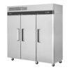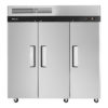 M3 Freezer, reach-in, three-section, 65.8 cu. ft., exterior LED digital thermometer, door open beep, self-diagnostic monitoring system, hot gas condensate system, smart fuzzy defrost, automatic fan motor delays, door pressure release, LED interior lighting, self-cleaning condenser device, (3) hinged solid doors with recessed handle & locks, (9) PE coated wire shelves, stainless steel front & sides (galvanized steel top, bottom & back), aluminum interior with stainless steel floor, top mount self-contained compressor, R290 Hydrocarbon refrigerant, 3/4 HP, 115v/60/1-ph, 7.9 amps, NEMA 5-15P, ETL-Sanitation, cETLus, ENERGY STAR®