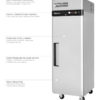 With this Turbo Air M3R19-1-N M3 Series 25″ solid door reach in refrigerator, you receive an efficient, convenient, and reliable solution for all of your refrigerated food storage needs. Designed with a rugged stainless steel front and sides, this unit is built for the rigors of daily commercial use. It even features a stainless steel floor to ensure further durability, as it won’t rust or corrode with the inevitable spill or leak. For convenient interior organization, the unit comes equipped with 3 heavy-duty wire shelves, which adjust to best suit the ingredients and dishes. Plus, bright, LED lighting illuminates the unit’s interior for fast and easy product retrieval. A single solid door provides interior access, outfitted with a lock for security and a pressure release feature for immediate opening.