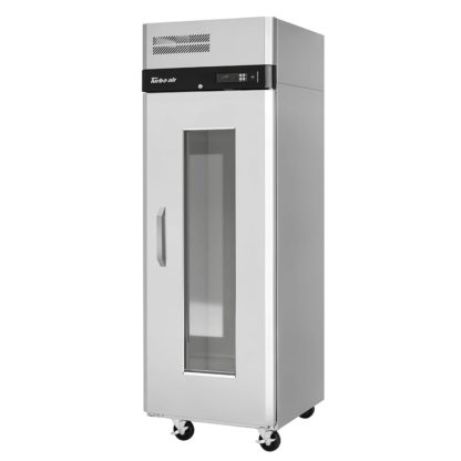 The sides and front of the Turbo Air M3R24-1-G-N reach-in refrigerator are constructed of dent- and rust-resistant stainless steel to ensure a long lifespan. Its interior is brightened with LED lighting, improving visibility through its single glass door. Because it’s mounted on casters, this unit can be comfortably wheeled away for service or cleaning.